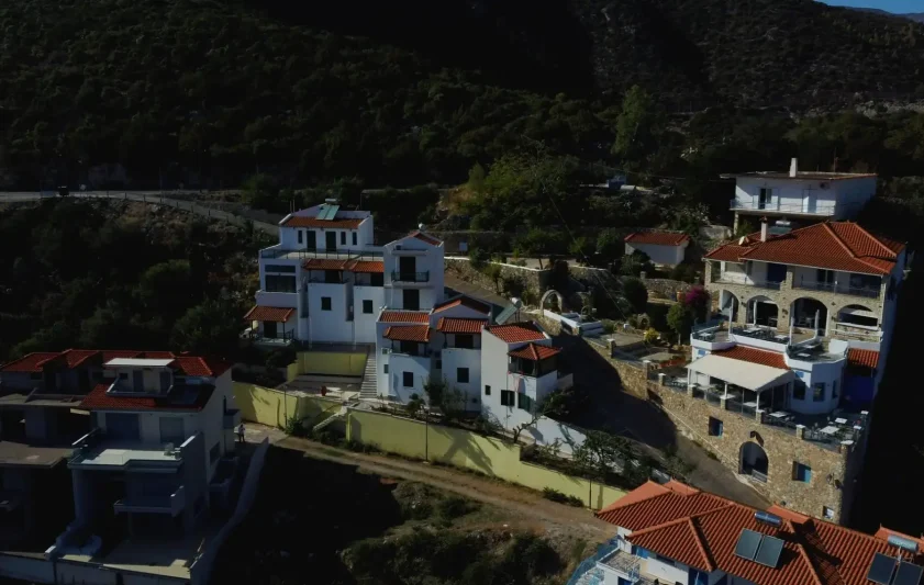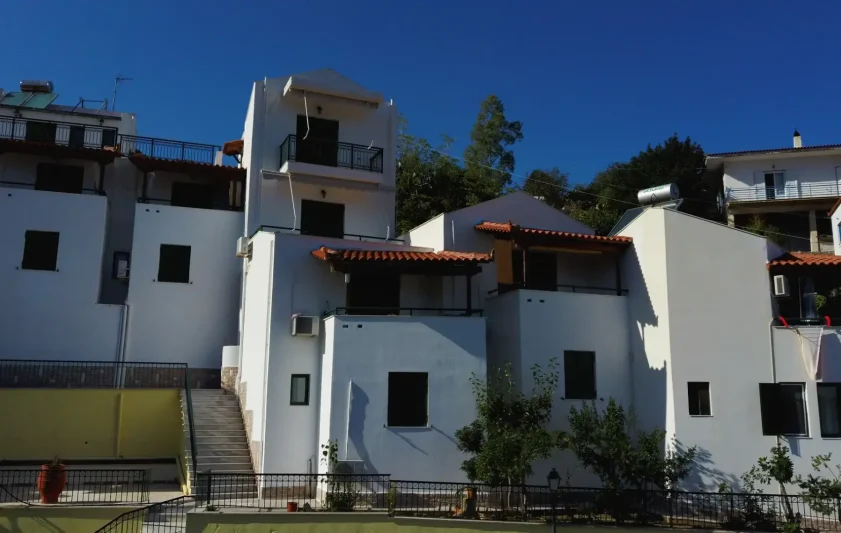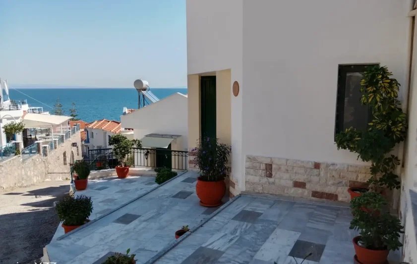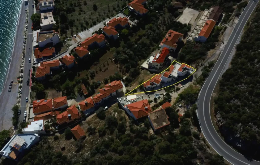 The unit is amphitheatrically built (different levels) on the north-west side of the Gulf of Tyros on a plot of 660 sq.m. and has the following spaces: