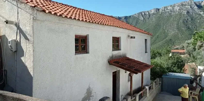For sale is a semi-detached stone house with basement in the traditional settlement of Tyros Arcadia in ”Pano Gitonia”. The building is located on a plot of 186 sqm and consists of the following areas: Ground floor, 46 sqm (utility room, kitchen, bathroom), first floor, 68 sqm (living room, dining room), underground storage room of 12 sqm, parking space. Nice view from the balcony. PEA in process. Price negotiable.